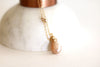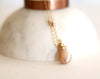 A shimmery faceted peach moonstone is wire wrapped in your choice of metal and paired with rosegold Swarovski crystals to form this lovely dainty necklace. You can choose 14K rose goldfilled, 14K gold filled or sterling silver finish/ chain.