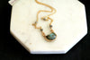 Rockpool necklace features a faceted Aquamarine gemstone hung on a half-moon 14K goldfilled bezel that I've hammered and textured, and paired with wire wrapped white aquamarine gemstone rondelles.